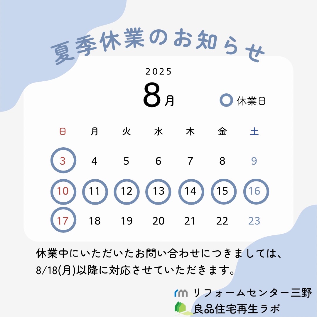 夏季休業のお知らせ